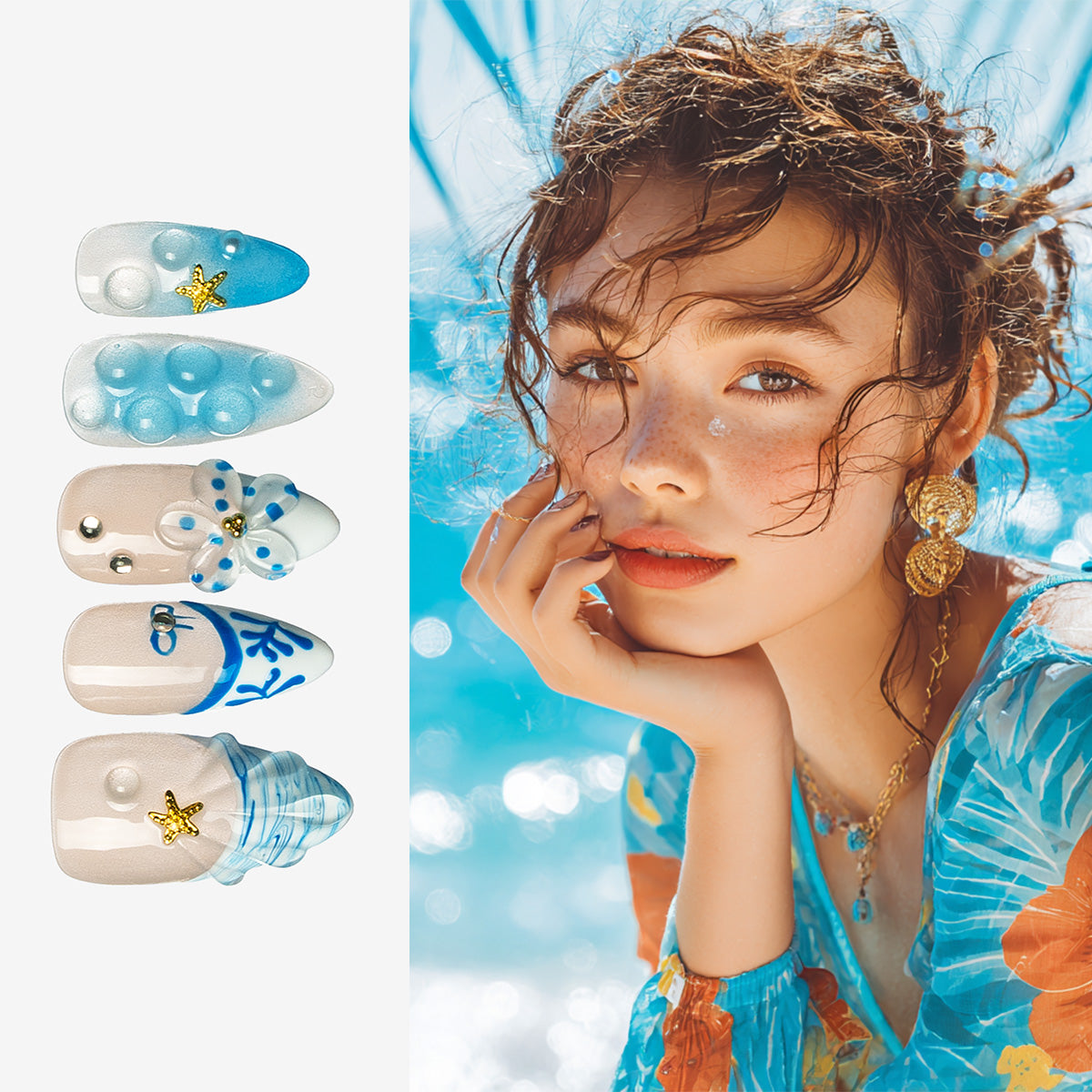 Discover the elegant almond shape, perfect for a sleek, natural look that elongates your fingers with timeless grace.