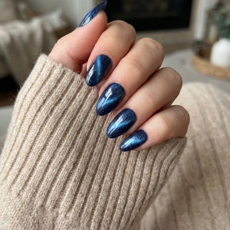 Icy Blue Velvet Cat Eye Almond Press-on Nails