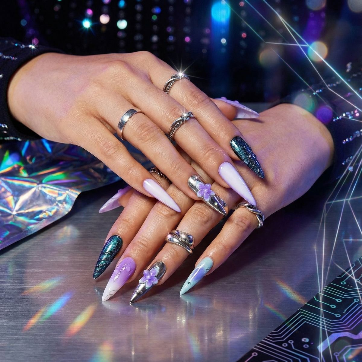 Mystic Petals Stiletto Press-On Nails