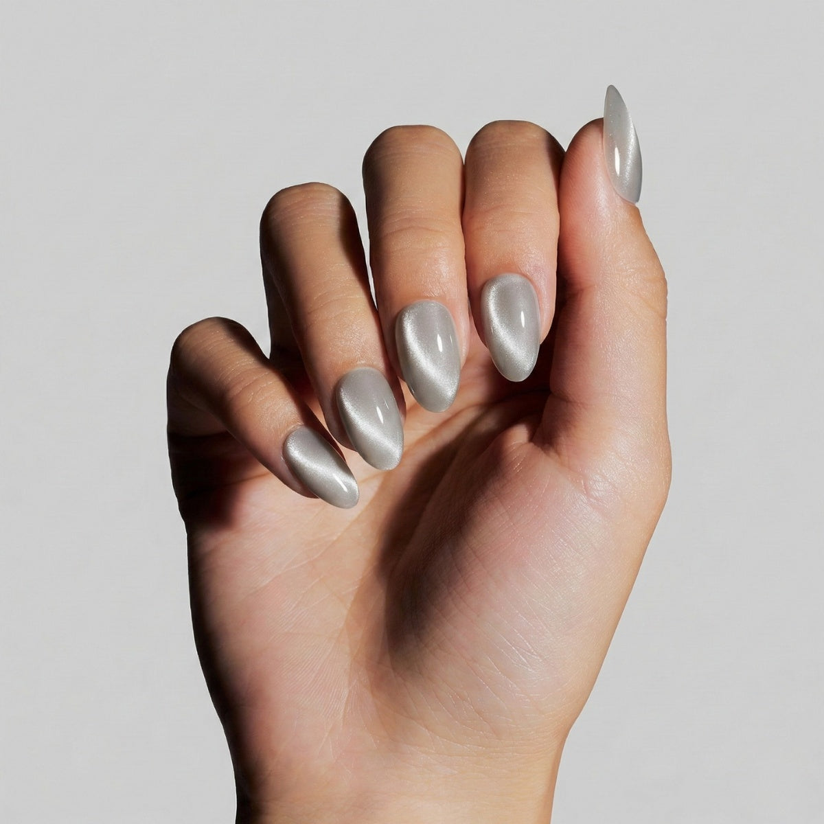 Starlight Silver | Reflective Cat Eye Almond Nails